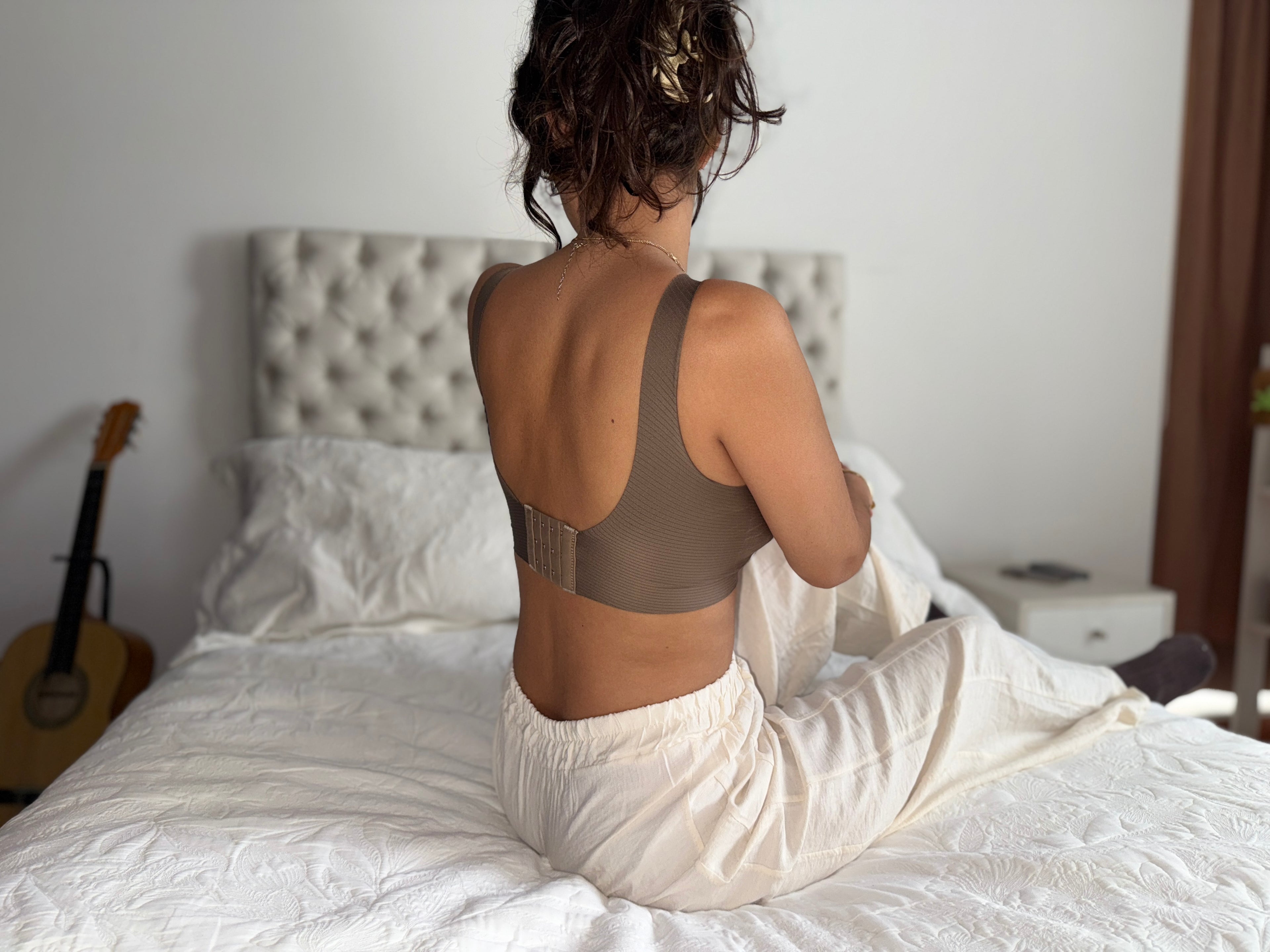 Soma nació de una experiencia que muchas compartimos: prendas que aprietan o incomodan. Quisimos crear algo distinto, que realmente se sintiera bien al usarlo. Libertad, estilo y bienestar en cada detalle. ✨